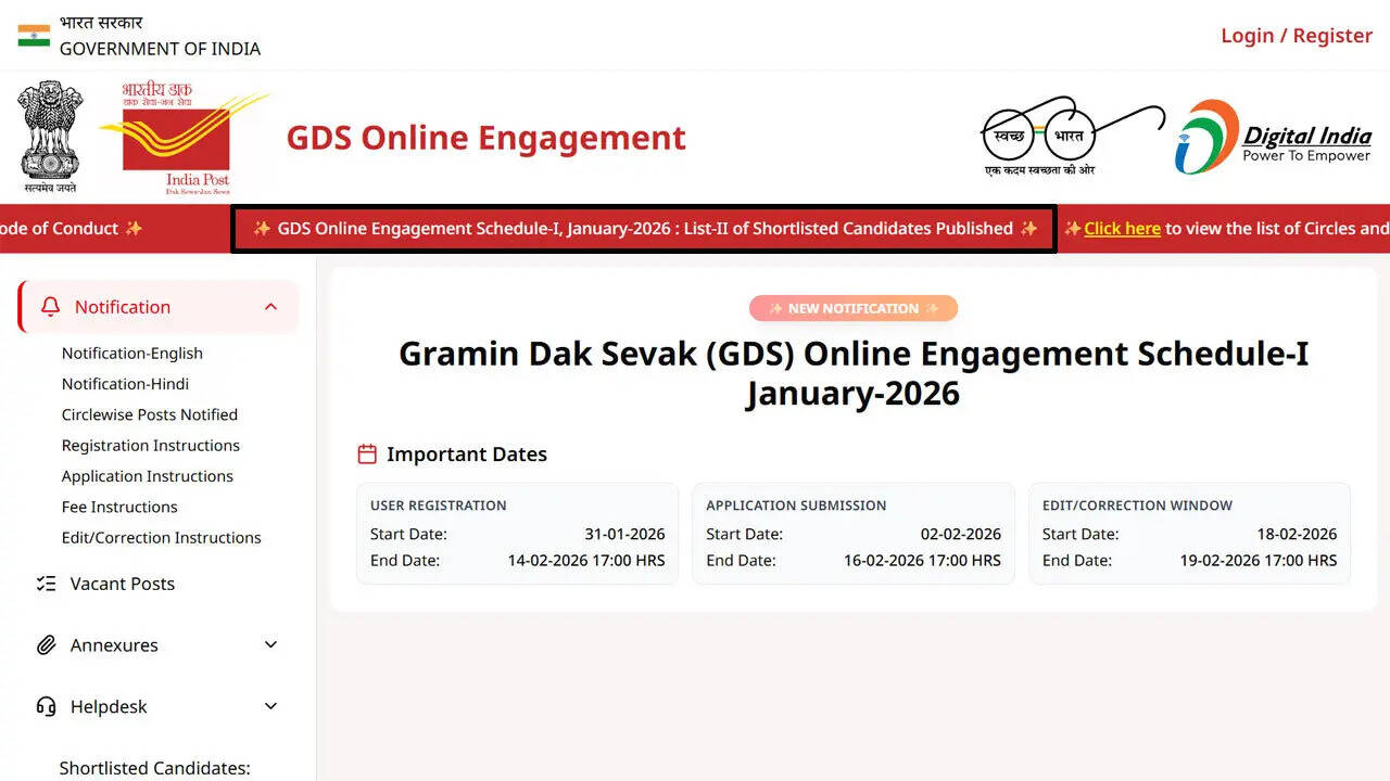 India Post GDS 2nd merit list: The Indian Postal Department has issued the second merit list for India Post GDS Recruitment 2026, covering 28,636 vacancies nationwide. Applicants who registered between February 02, 2026 and February 14, 2026 can check their selection status online. The recruitment is based on merit derived from Class 10 marks. Shortlisted candidates will proceed to document verification followed by a medical examination before final selection, as per the prescribed recruitment process.< a href="https://timesofindia.indiatimes.com/education/news/india-post-gds-result-2026-second-merit-list-out-applicants-can-check-status-here/articleshow/130183313.cms">READ MORE